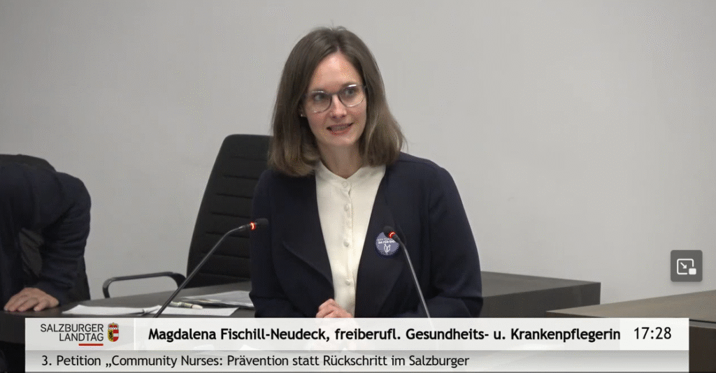 Heute hat sich Magdalena Fischill-Neudeck erneut als Expertin für Community Nursing im Land Salzburg in einer Ausschusssitzung des Landes Salzburg eingesetzt.